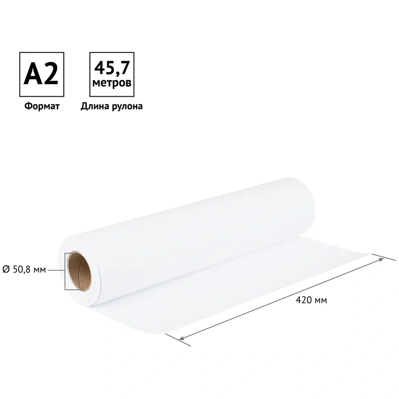 Размер бумажного полотна составляет 420 мм (16,5 in), что соответствует формату А2. Длина рулона - 45,7 м (150 ft). Внутренний диаметр втулки - 50,8 мм.