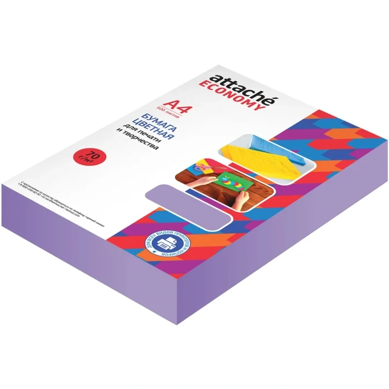 Бумага цветная Attache Economy (фиолетовый пастель), 70г, А4, 500 л