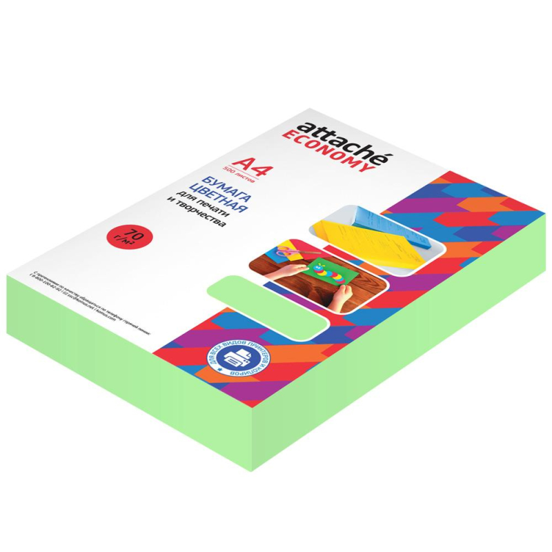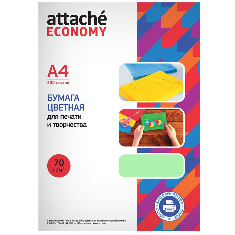 Бумага цветная Attache Economy (зеленый пастель), 70г, А4, 500 л Бумага цветная Attache Economy (зеленый пастель) предназначена для печати на всех видах принтеров. Одна пачка содержит 500 листов формата А4, плотность которых составляет 70 г/кв.м. Цветопередача монитора может искажать реальный цвет продукта.