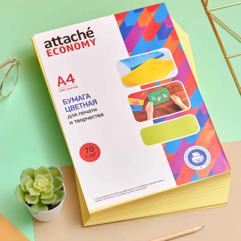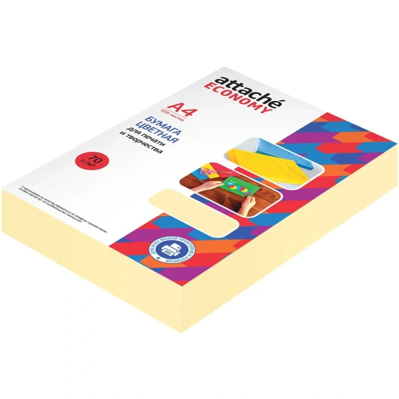 Бумага цветная Attache Economy (желтый пастель), 70г, А4, 500 л