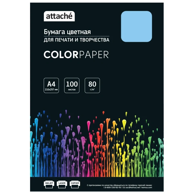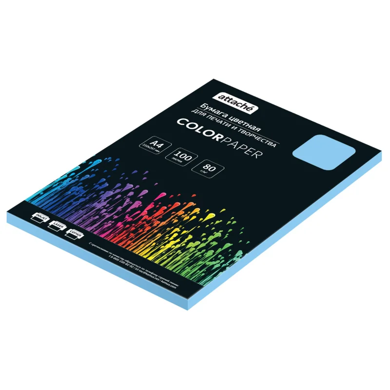 Бумага цветная Attache (голубой пастель), 80г, А4, 100 л Бумага цветная Attache пастельного голубого цвета предназначена для печати на всех видах принтеров. Одна пачка содержит 100 листов формата А4, плотность которых составляет 80 г/кв.м. Страна производства Китай. Цветопередача монитора может искажать реальный цвет продукта.