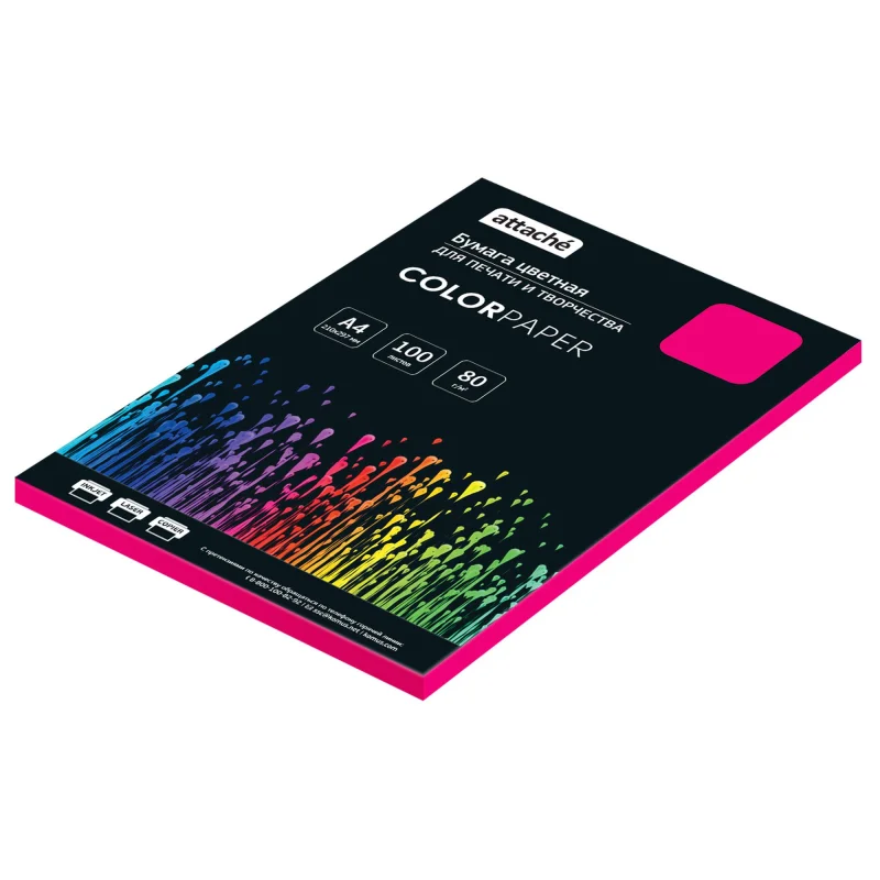 Бумага цветная Attache (розовый интенсив), 80г, А4, 100 л Бумага цветная Attache (розовый интенсив) предназначена для печати на всех видах принтеров. Одна пачка содержит 100 листов формата А4, плотность которых составляет 80 г/кв.м. Цветопередача монитора может искажать реальный цвет продукта.