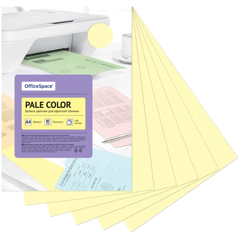 Бумага цветная OfficeSpace 'Pale Color', A4, 80 г/м?, 100л., (оранжевый)