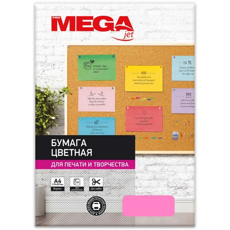 Бумага цветная ProMEGA Jet (А4,75г,малиновый неон) пачка 500л