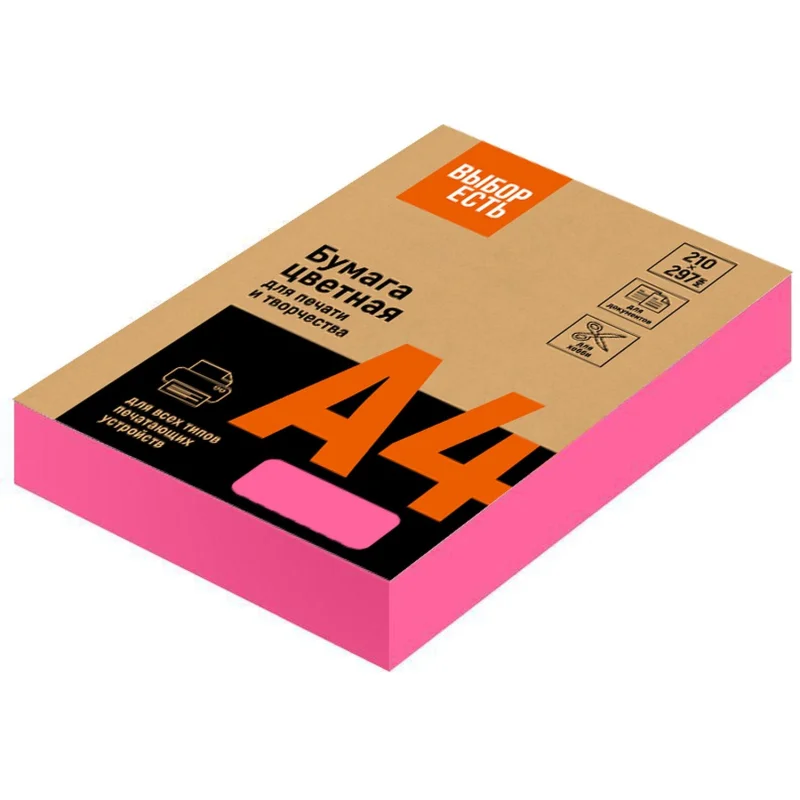 Цветная бумага для офиса Выбор есть A4 предназначена для печати на всех видах оргтехники и ризографах. Идеально подходит для документов, презентаций, рекламных материалов, открыток. Одна пачка содержит 500 листов формата А4, плотность которых составляет 75 г/кв.м.