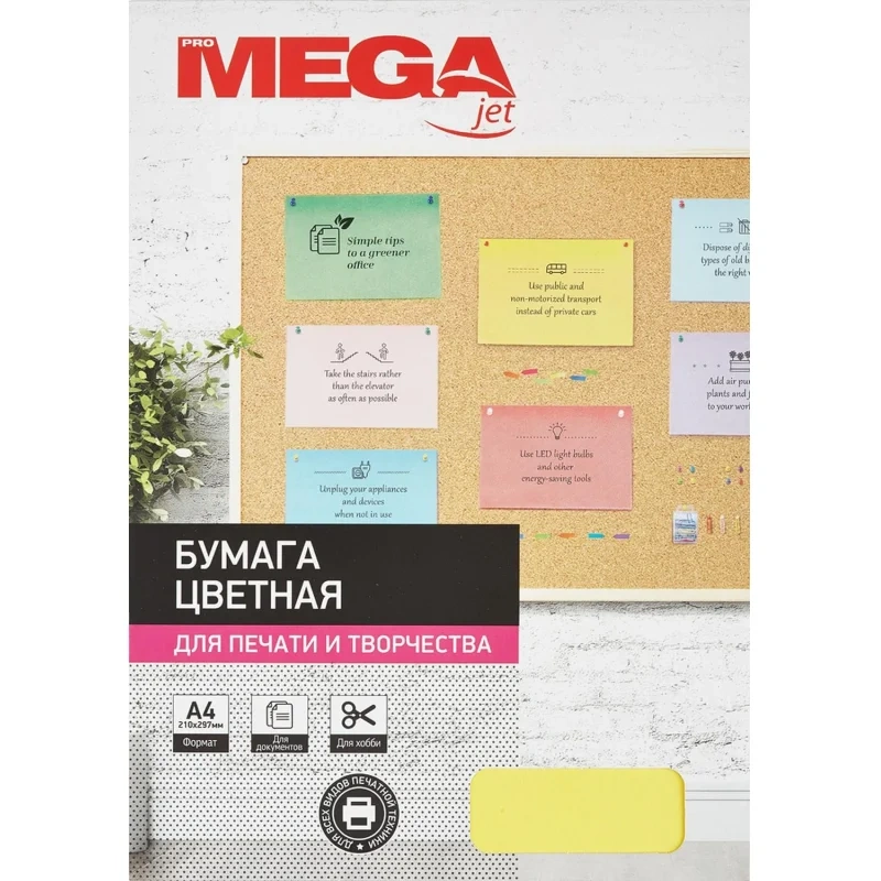 Бумага цветная ProMEGA Jet (А4,75г,микс неон) пачка 100л