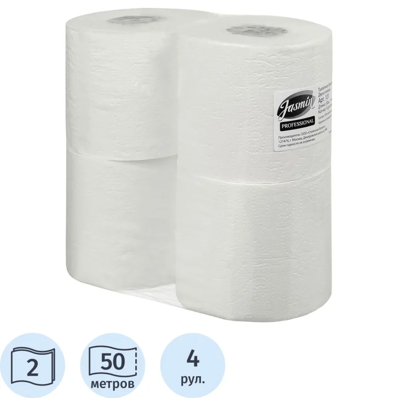 Бумага туалетная 2-слойная белая 50 метров (4 рулона в упаковке).