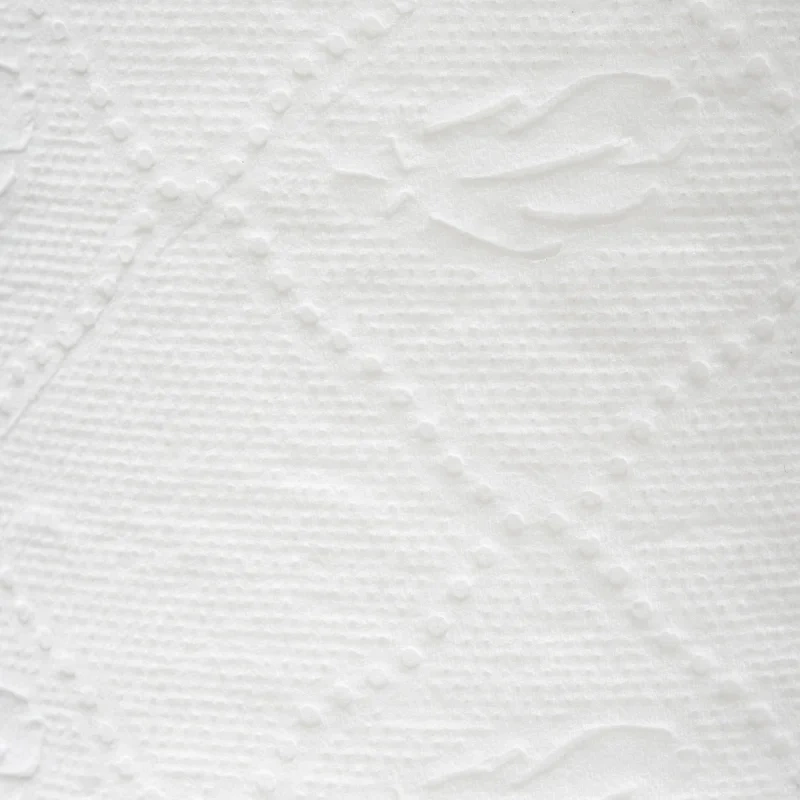 Двухслойная туалетная бумага белого цвета с тиснением и перфорацией. Бумага отличается мягкостью, хорошо смывается, не оставляя засоров. Комфортная и приятная на ощупь.