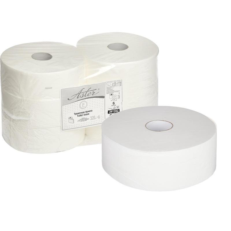 Бумага туалетная д/дисп Aster 2сл бел 100%цел втул 320м 6 рул/уп 341202