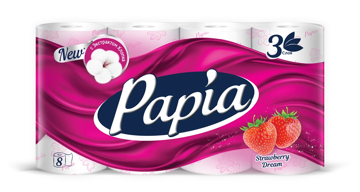 Туалетная бумага Papia Клубничная мечта 3-слойная, 8 рулонов