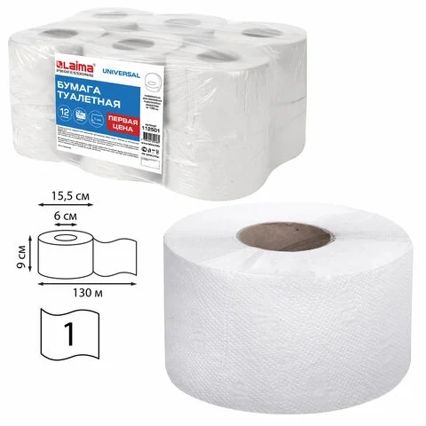 Туалетная бумага Laima серая, 1 слой, 130м, 12 рулонов