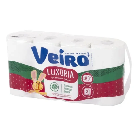 Бумага туалетная Veiro 'Luxoria' 3-слойная, 8шт., тиснение, белая