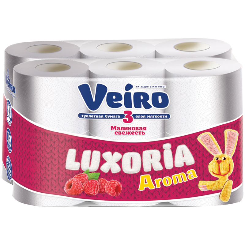 Бумага туалетная Veiro 'Luxoria Aroma. Малиновая свежесть' 3-слойная, 12шт., цветное тиснение, белая