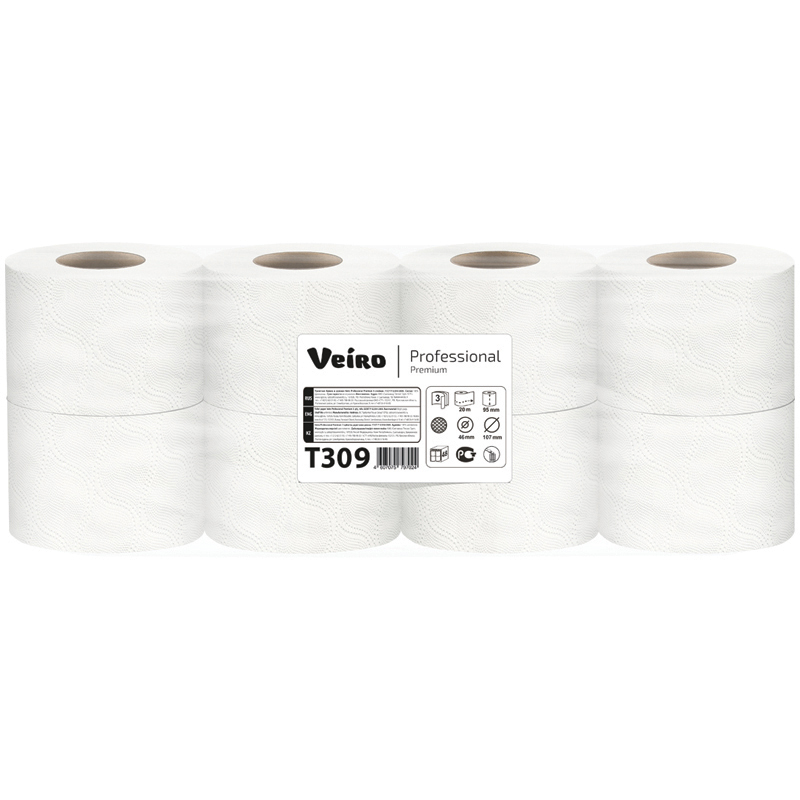 Бумага туалетная Veiro Professional 'Premium', 3-слойная, 8шт., 20м/рул., белая