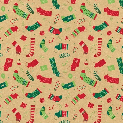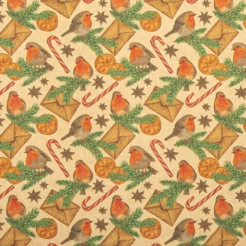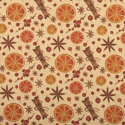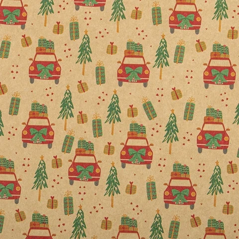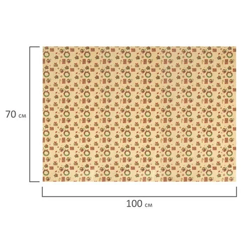 Изготовлена из крафт-бумаги, представлена в 10 универсальных новогодних дизайнах. Крафт-бумага плотностью 70 г/м2 упакована в рулоны длиной 100 см и шириной 70 см (± 5%). Поставляется в нескольких вариантах дизайна (без возможности выбора).