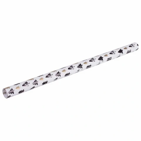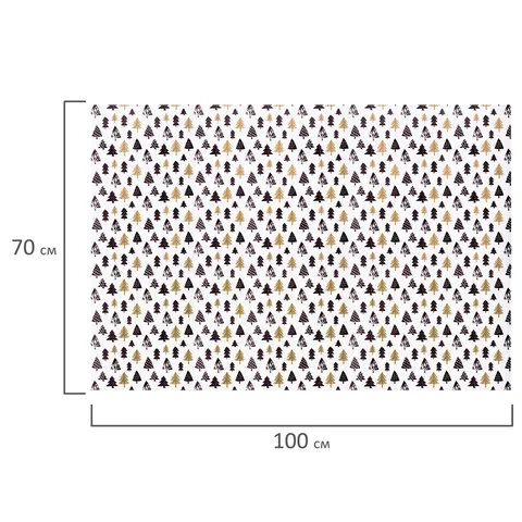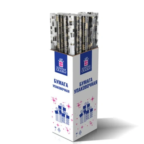 Изготовлена из мелованной бумаги и представлена в 10 универсальных новогодних дизайнах. Бумага плотностью 90 г/м2 упакована в рулоны длиной 100 см и шириной 70 см (± 5%). Поставляется в нескольких вариантах дизайна (без возможности выбора).