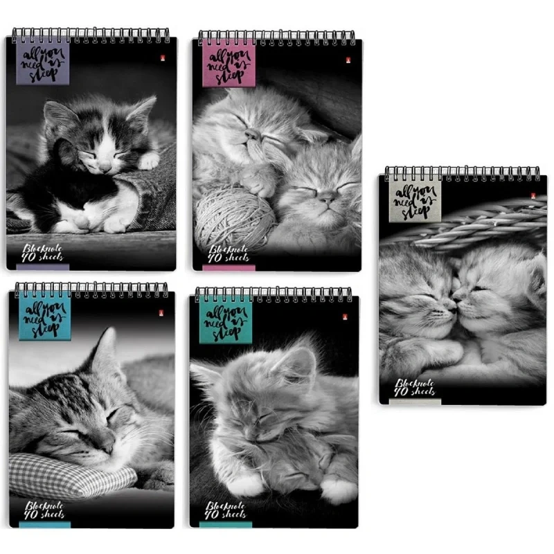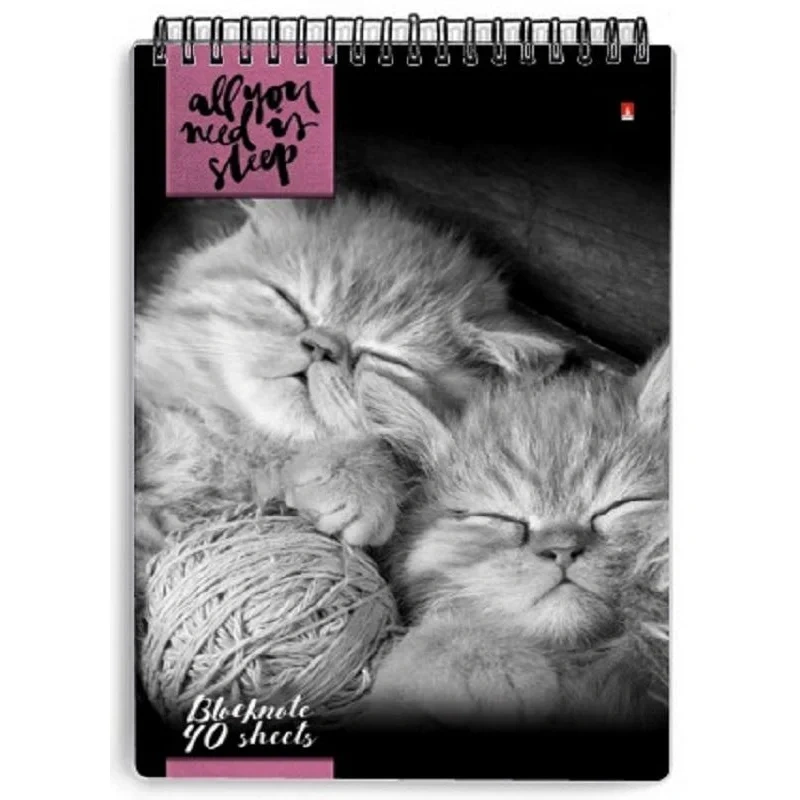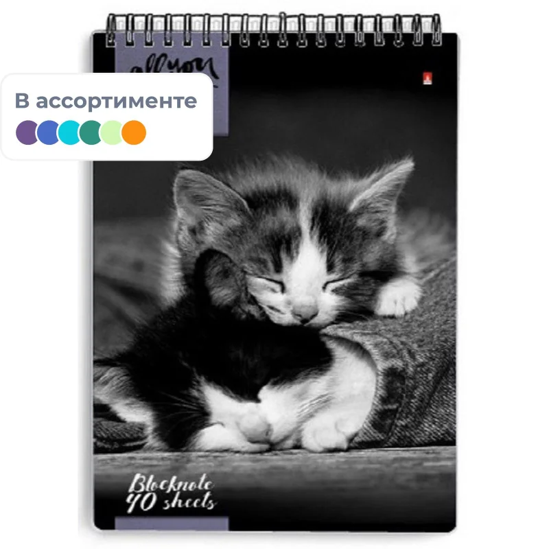 Блокнот Альт Кошки, А5, 40 листов, в клетку, на спирали, картон, ассорти