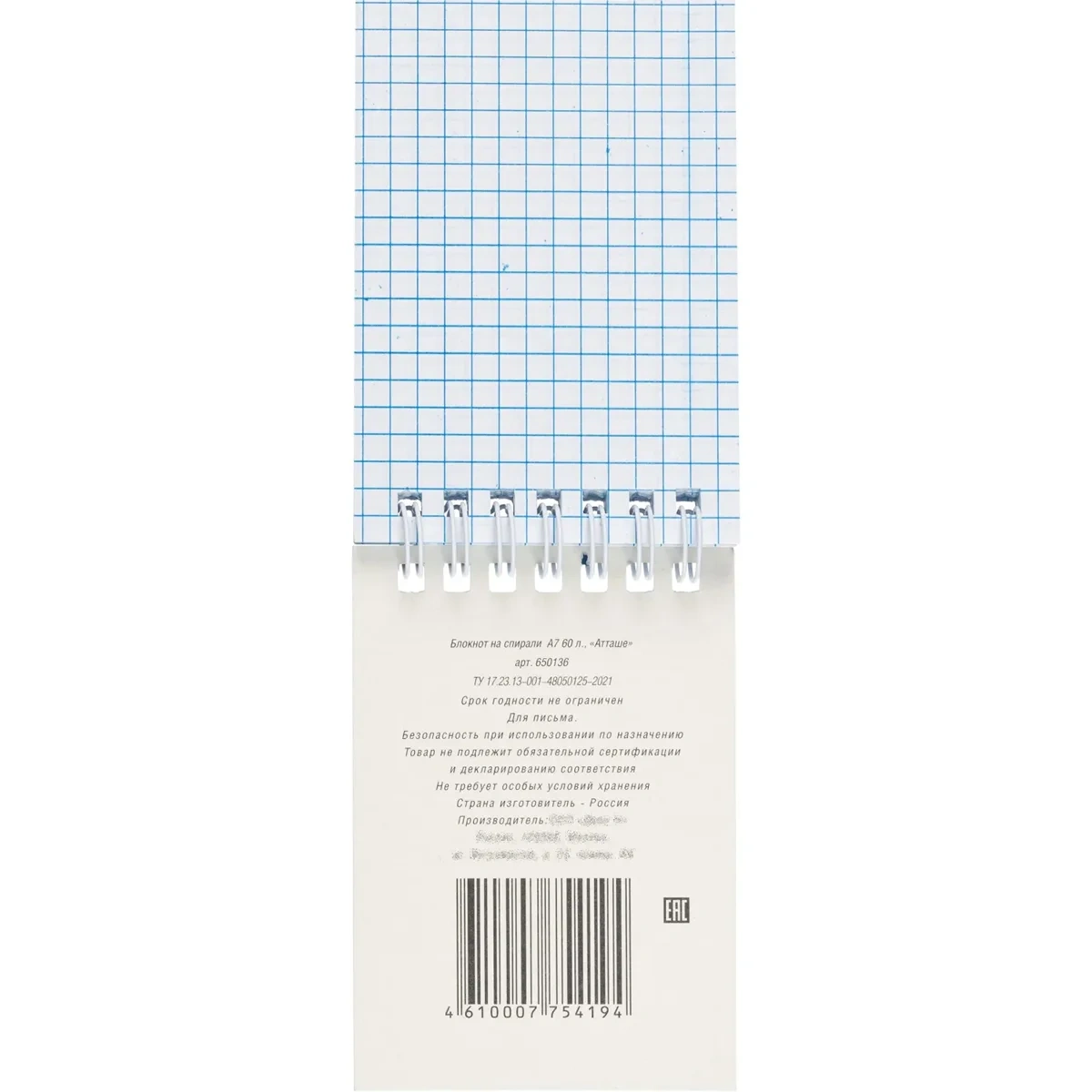 Блокнот Attache синий, А7, 60 листов, на спирали, ламинированный картон
