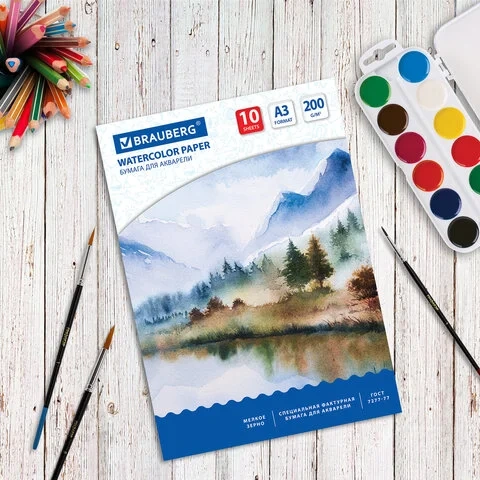 Папка для акварели Brauberg С эскизом А3, 200 г/м2, 10 листов