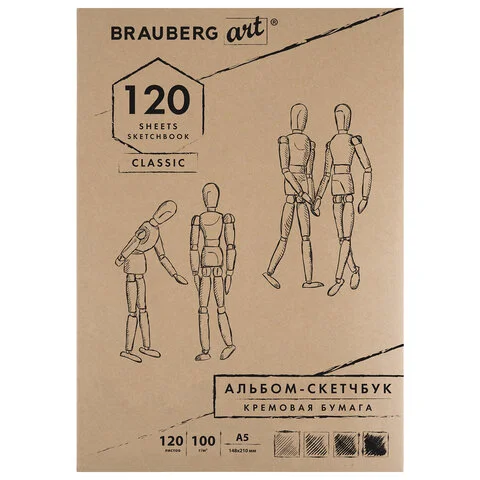 Скетчбук, слоновая кость 100 г/м2, 148х210 мм, 120 л., прошивка, BRAUBERG ART 'CLASSIC', 128961