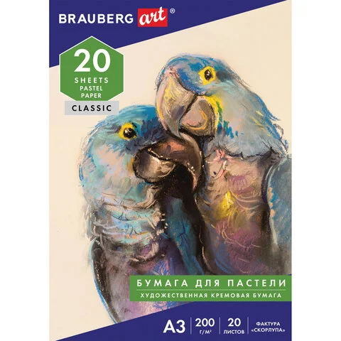 Папка для пастели Brauberg A3, 200г/м2, 20 листов, тиснение скорлупа, тонированная, слоновая кость