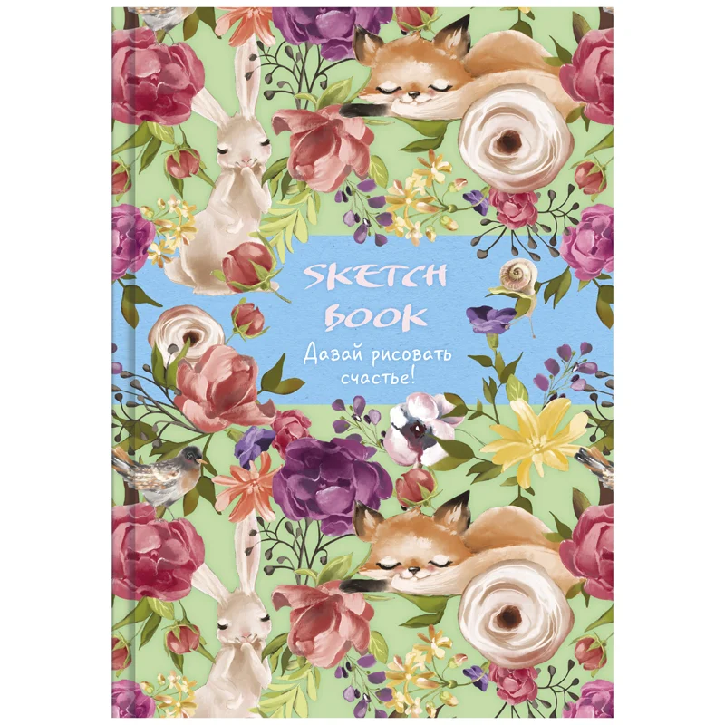 Скетчбук 80л., А5 7БЦ BG 'Цветущая гортензия', матовая ламинация, 80г/м2, розовый блок