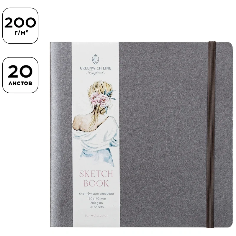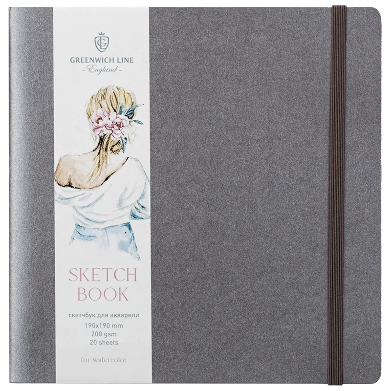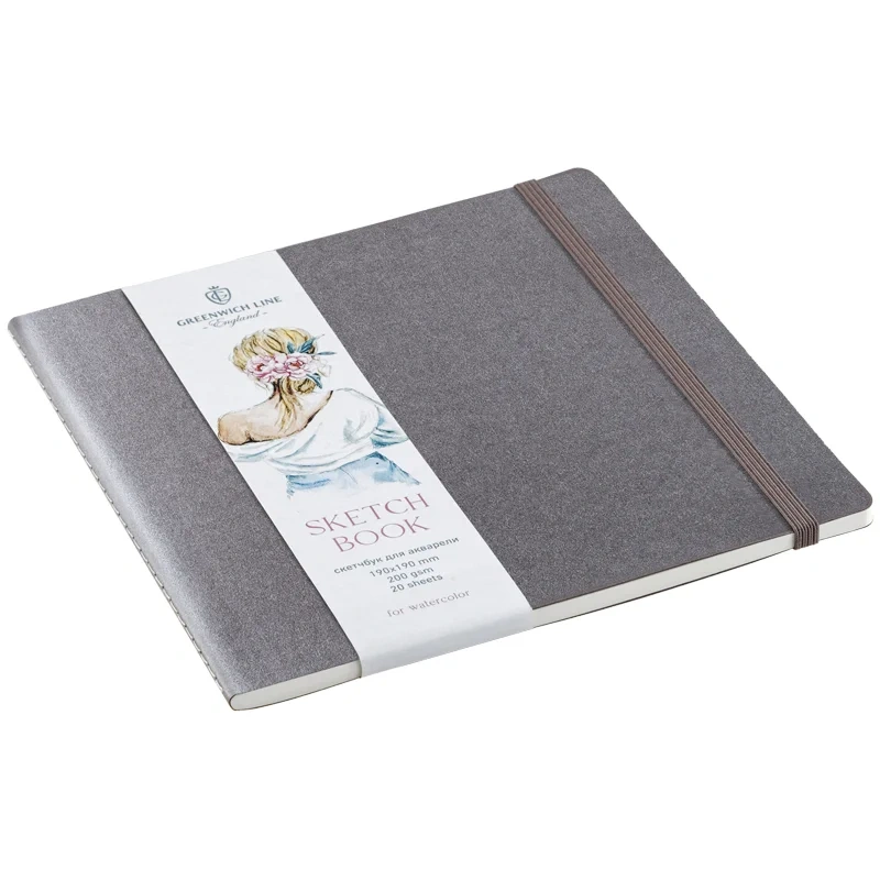 Скетчбук для акварели 20л., 190*190 Greenwich Line, серебряный, 200г/м2, на резинке