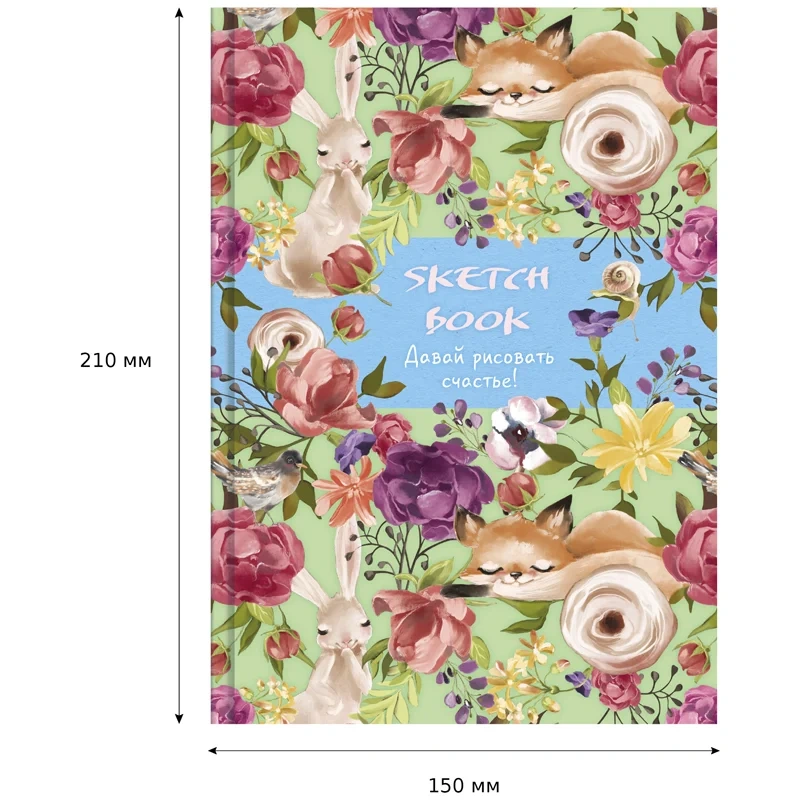 Скетчбук 80л., А5 7БЦ BG 'Рисую счастье', матовая ламинация, блестки, 100г/м2, белый блок с градиент