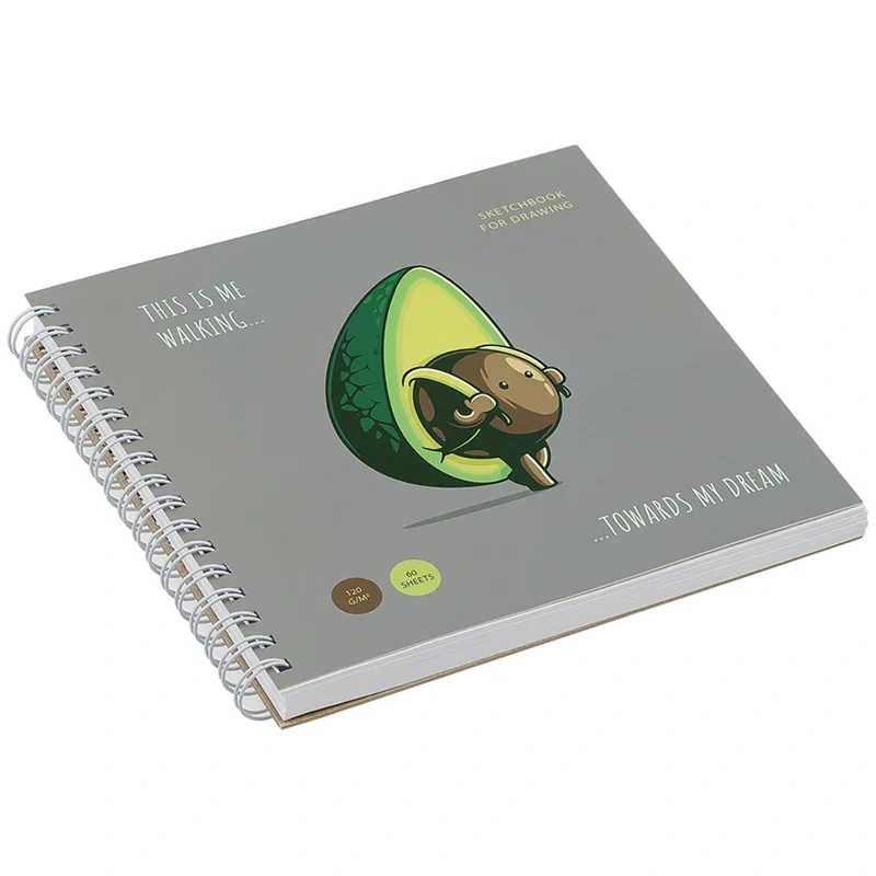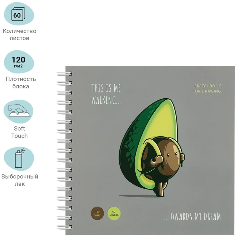 Скетчбук 60л., 150*150 MESHU 'Avocadreams', на гребне, 120г/м2, выб. лак, soft-touch