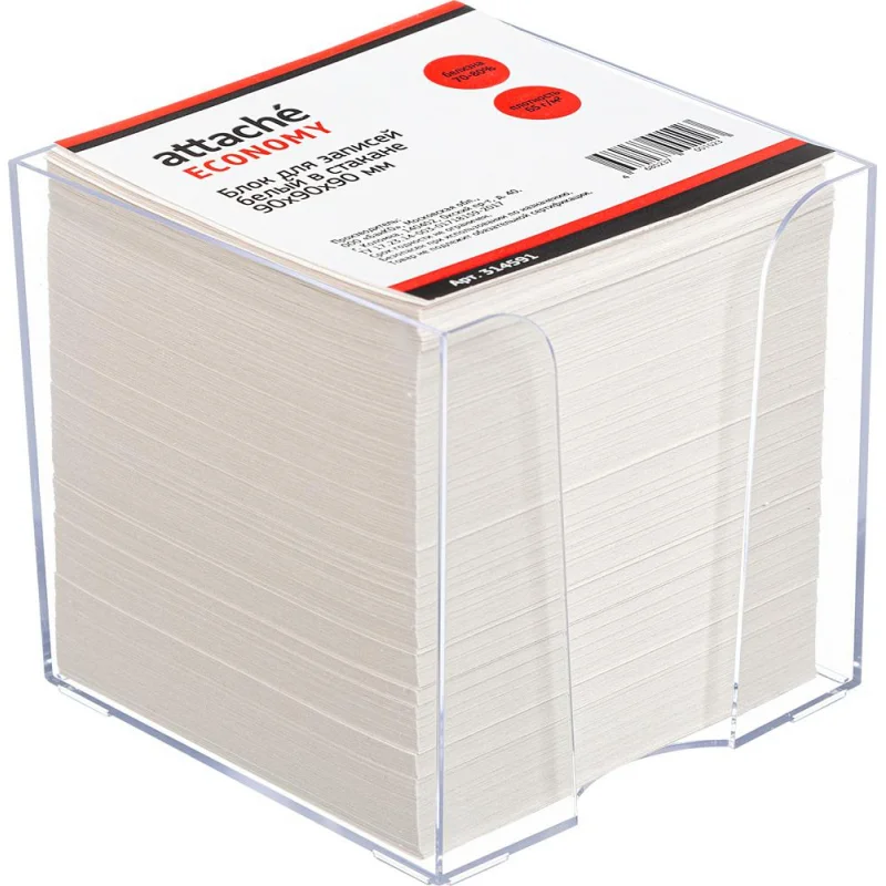 Блок для записей проклеенный Attache белый, 90х90мм, 447451