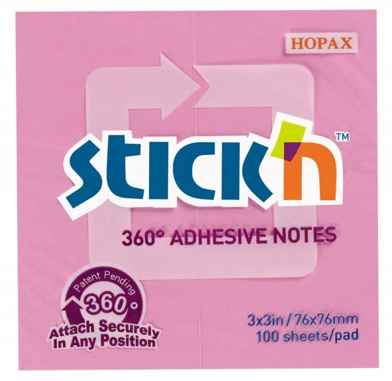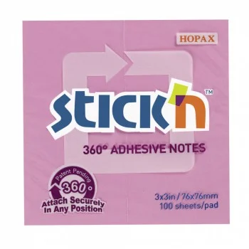 Самокл. блок 76х76, 100л, клей по периметру, розовый, STICK'N, HOPAX