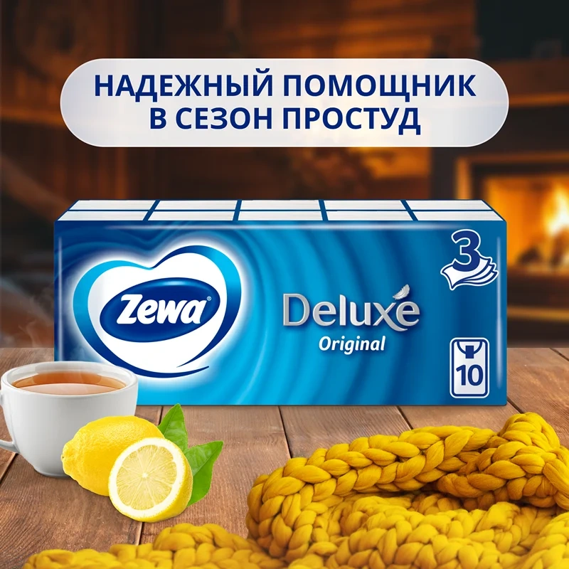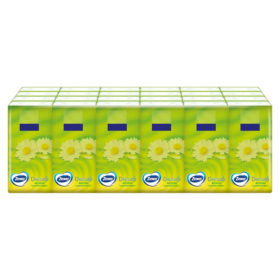 Отзывы о «Бумажные носовые платки Zewa Deluxe аромат ромашки, 3 слоя, 10уп х 10шт»