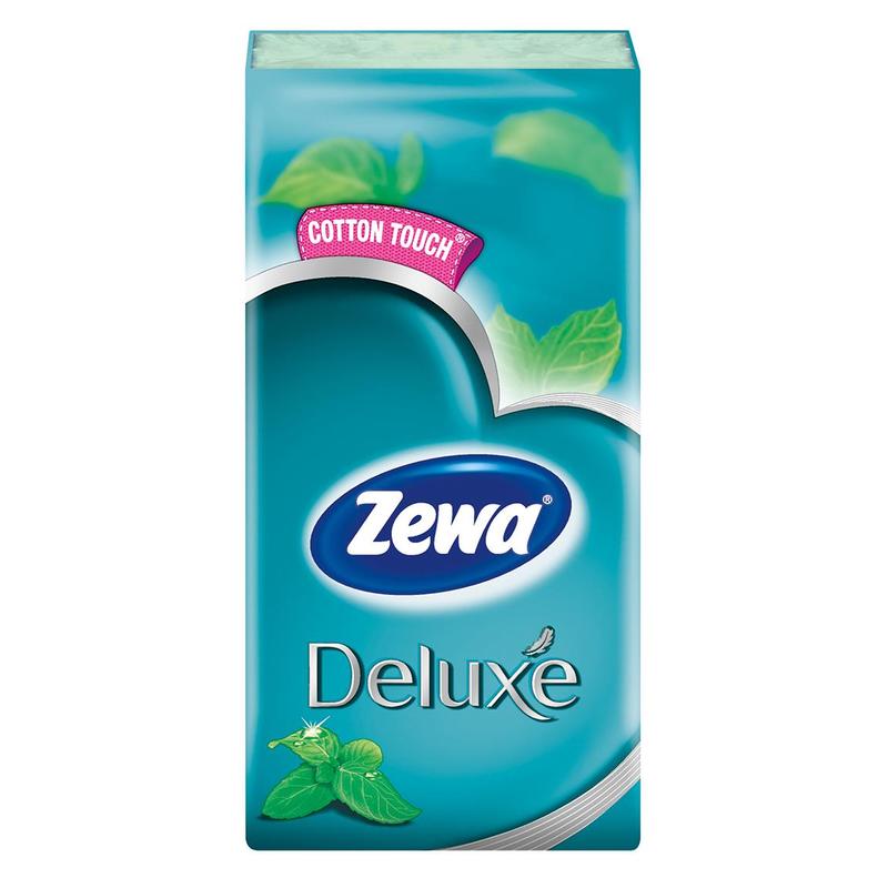Бумажные носовые платки Zewa Deluxe зеленые, ментол, 10шт х 10уп