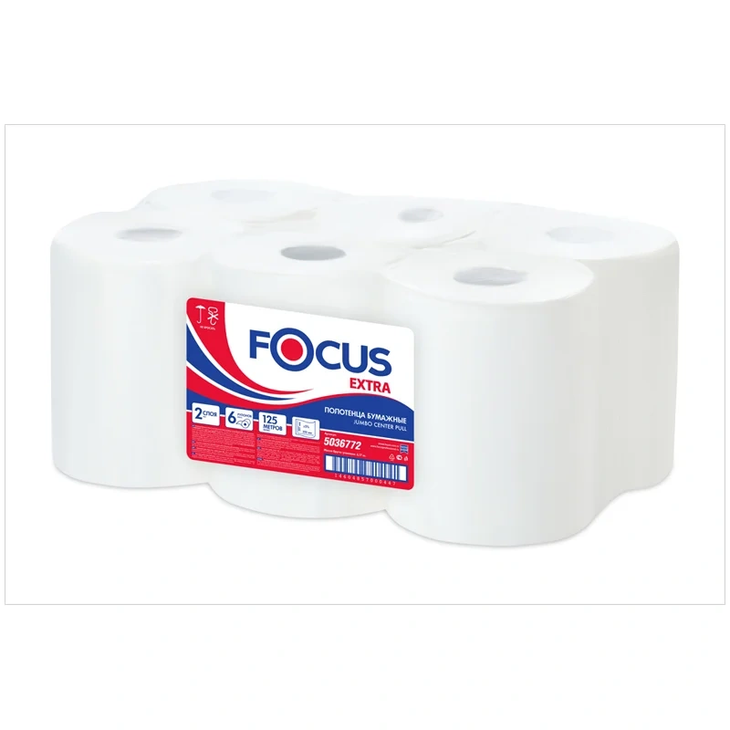Бумажные полотенца Focus Jumbo 5036772, в рулоне с центр. вытяжкой, белые, 125м, 2 слоя
