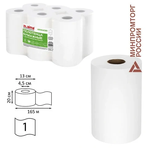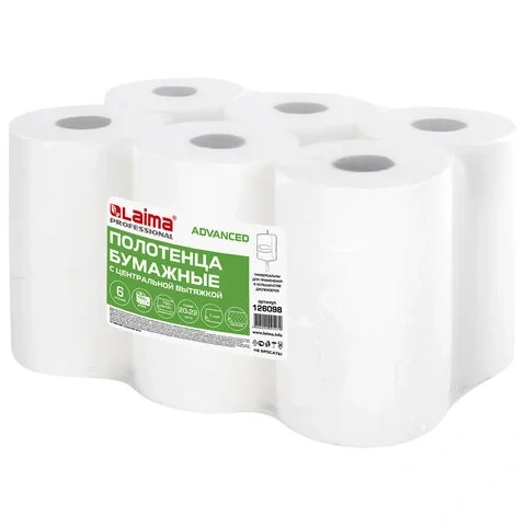 Бумажные полотенца Laima Классик M2, в рулоне с центр. вытяжкой, 1 слой, 165м, белые, 6 рулонов