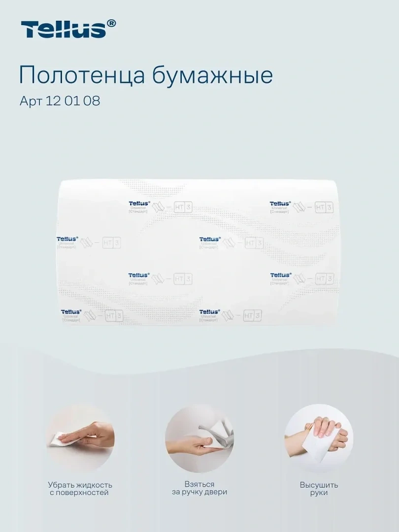 Полотенца совместимы с диспенсером Tellus (Торк/Tork) для полотенец с V-сложением (ZZ).