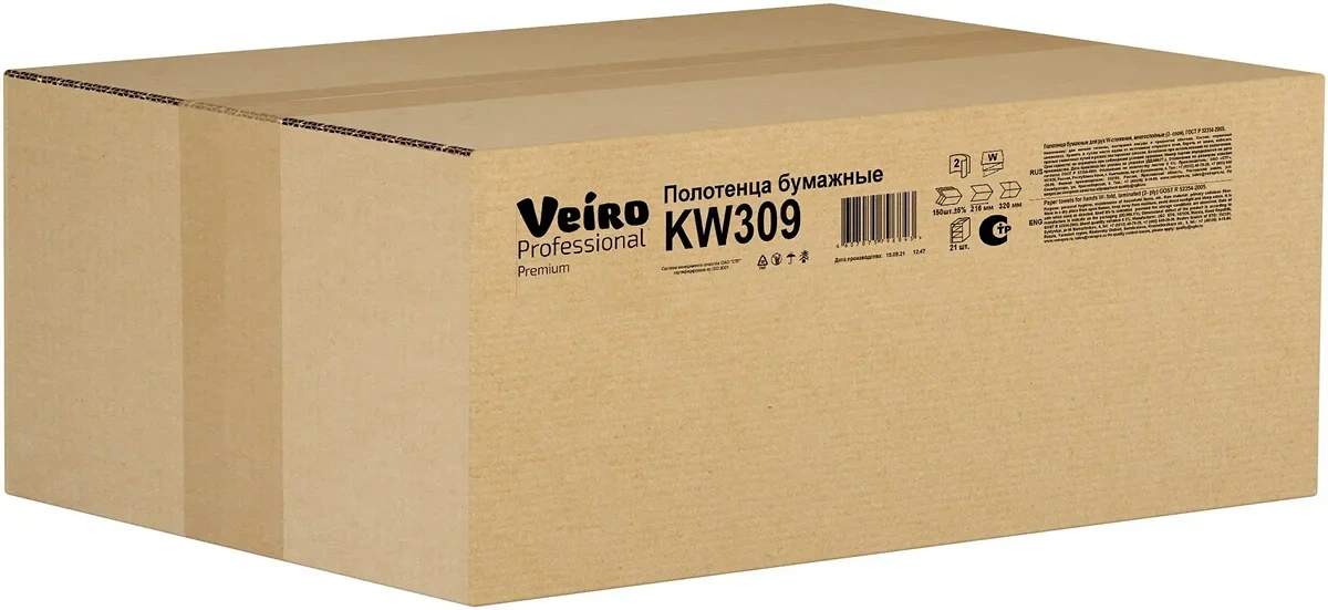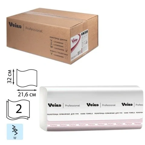 Бумажные полотенца Veiro Professional Premium KW309, листовые, белые, W укладка, 150шт, 2 слоя
