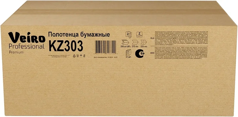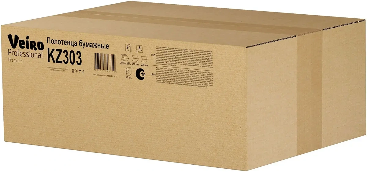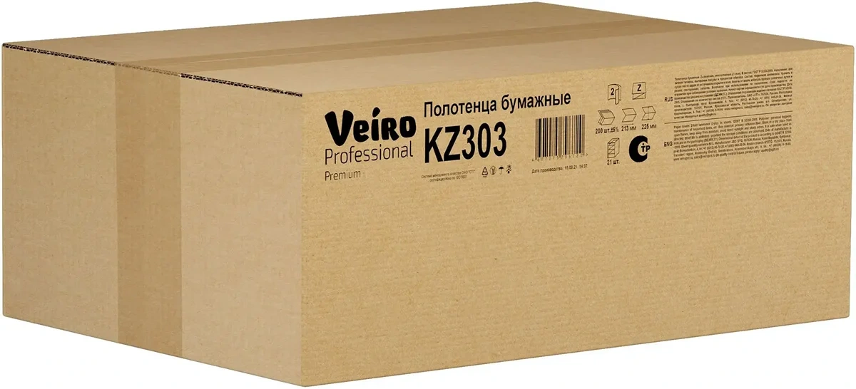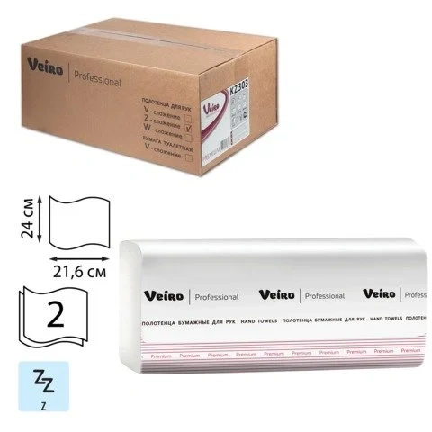 Бумажные полотенца Veiro Professional Premium KZ303, листовые, белые, Z укладка, 200шт, 2 слоя
