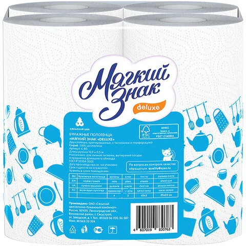 Бумажные полотенца Мягкий Знак белые, 2 слоя, 10м, 4 рулона