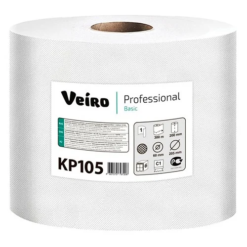 Veiro KP105 Professional Basic полотенца в рулоне с центральной вытяжкой, 300м, 1 слой, бе