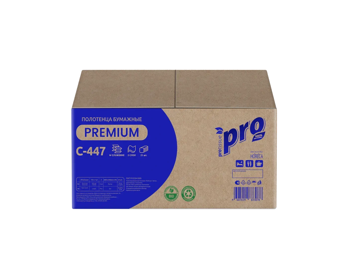 Бумажные полотенца Protissue C447 листовые, белые, W-сложения, 150шт, 2 слоя