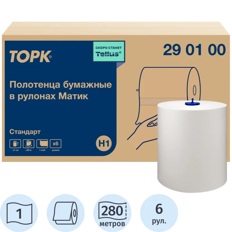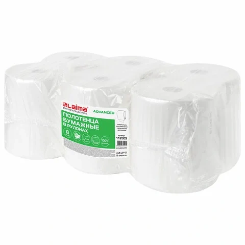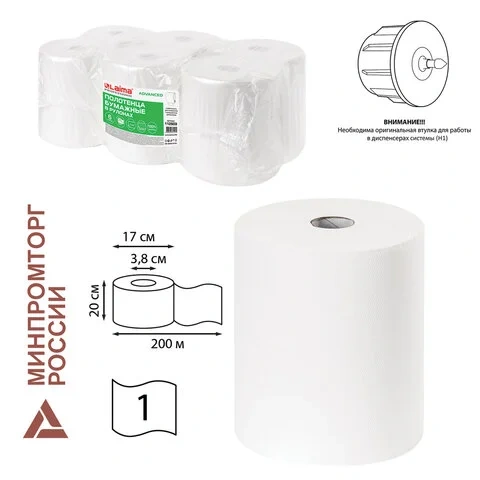 Бумажные полотенца Laima Adavanced H1, в рулоне, 1 слой, 200м, белые, 6 рулонов