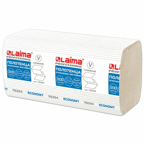 Бумажные полотенца Laima Economy H3, листовые, 1 слой, 200шт, 20 пачек