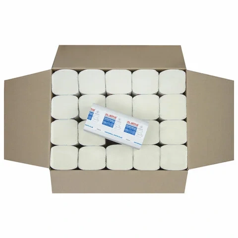 Бумажные полотенца Laima Universal White Plus H3, листовые, 1 слой, 250шт, белые, 20 пачек