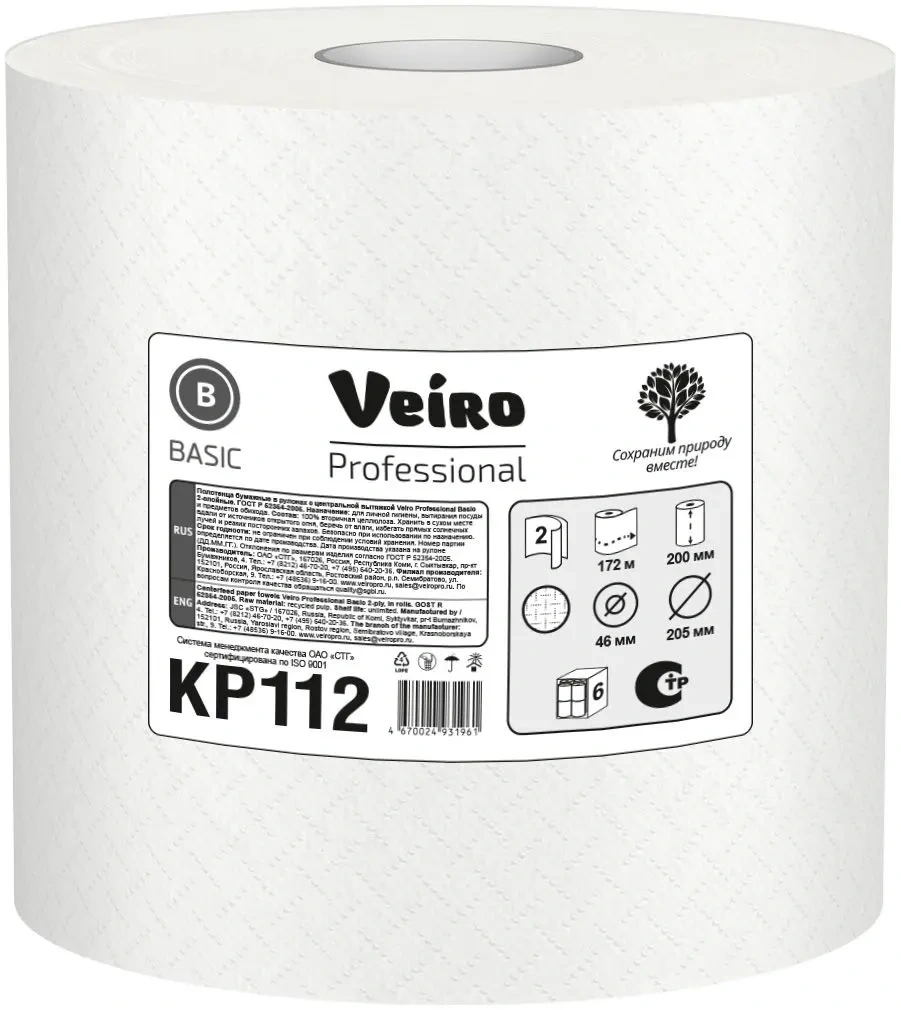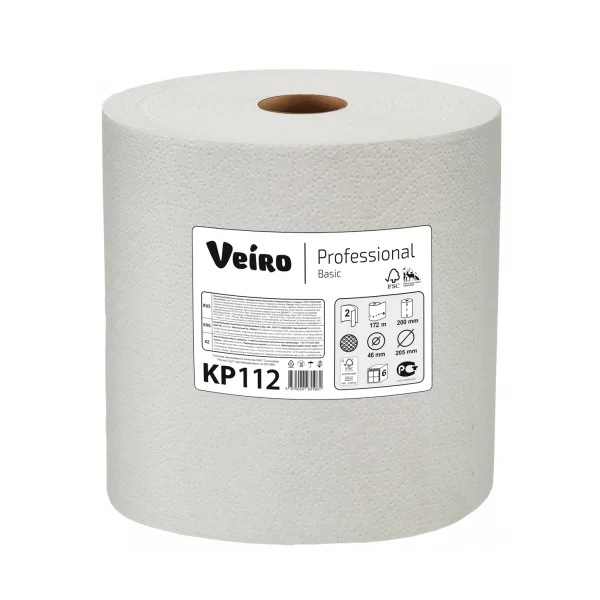 Бумажные полотенца Veiro Basic KP112, в рулоне, 172м, 2 слоя, цвет натуральный