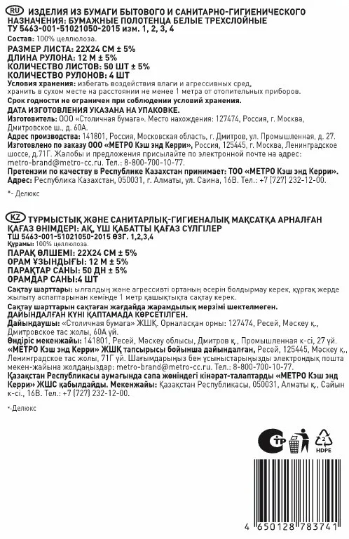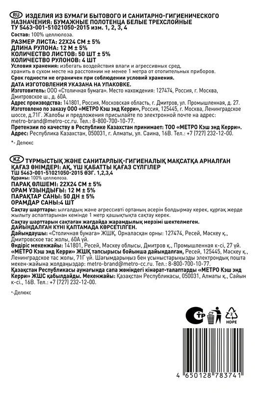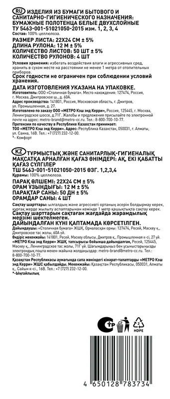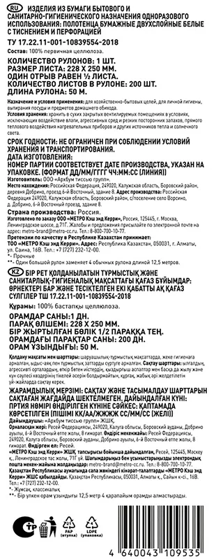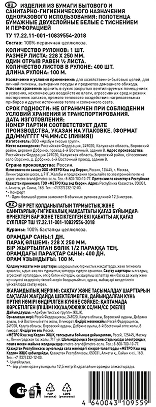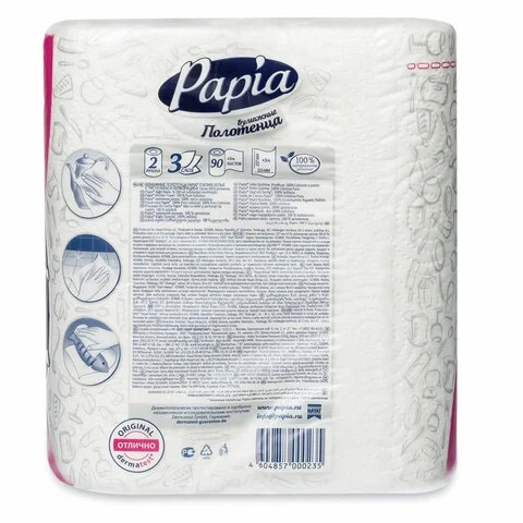 Бумажные полотенца Papia в рулоне, белые, 3 слоя, 2 рулона