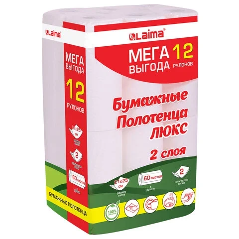 Бумажные полотенца Laima Luxe белые, 15м, 2 слоя, 12 рулонов