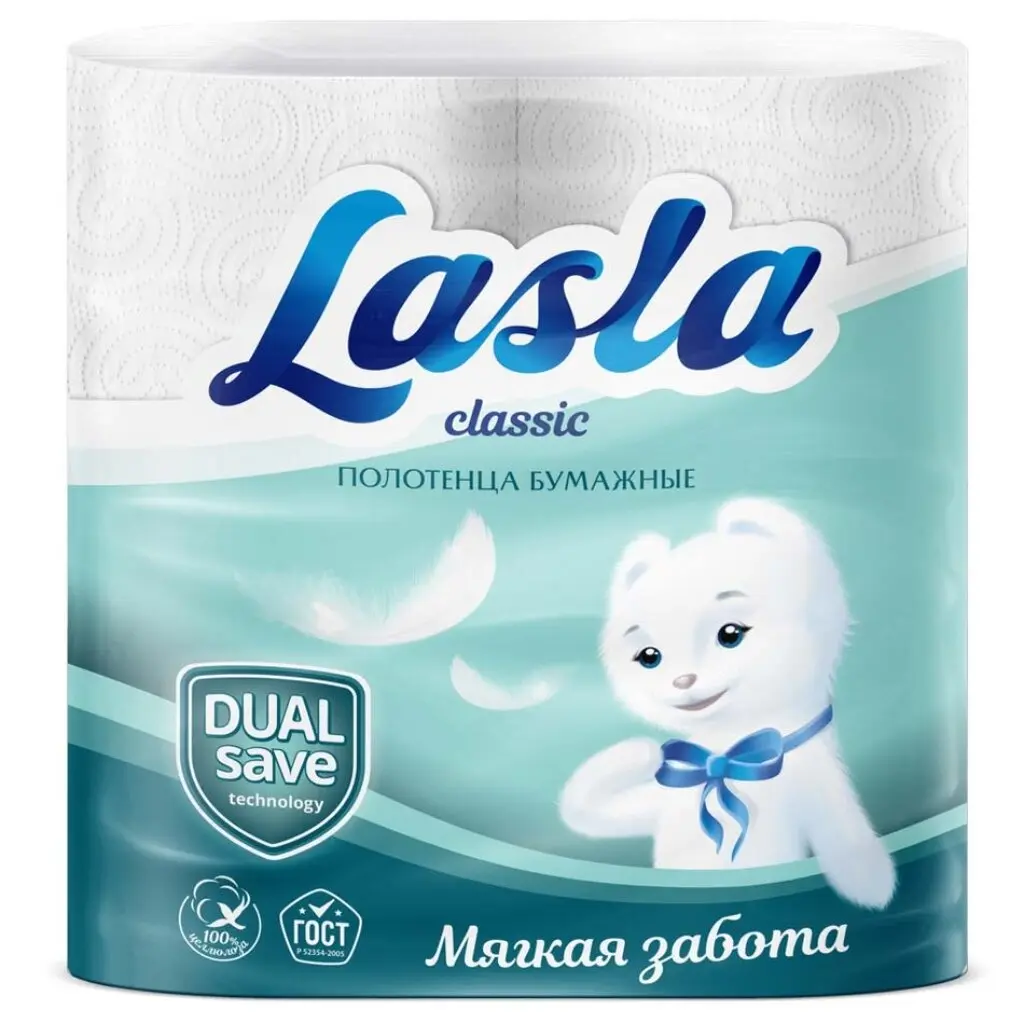 Бумажные полотенца Lasla Classic в рулоне, 2 слоя, белые, 12м, 2шт/уп