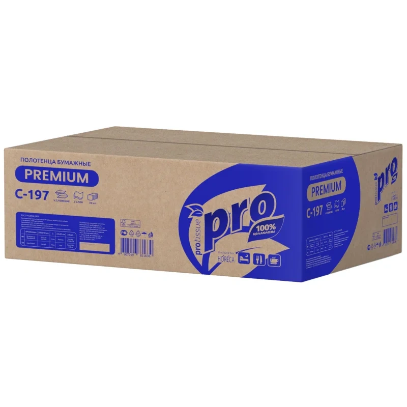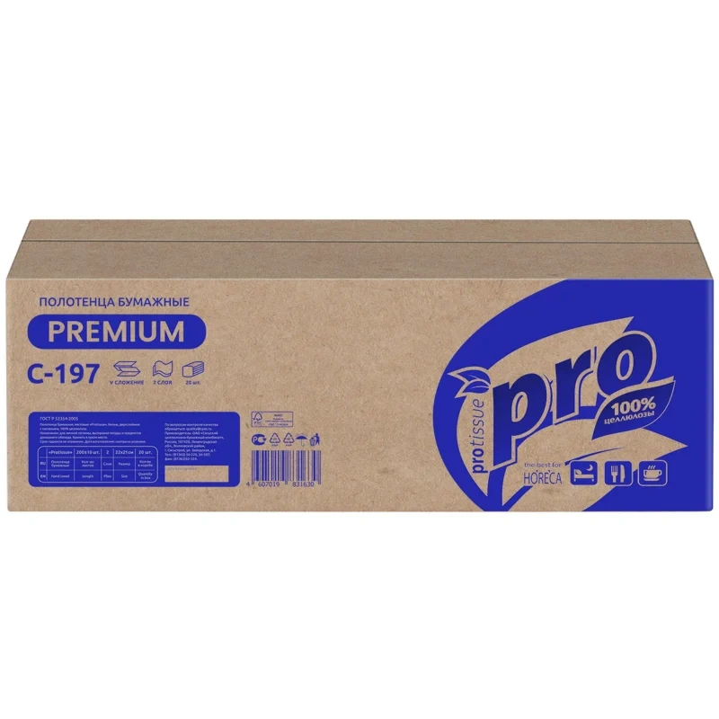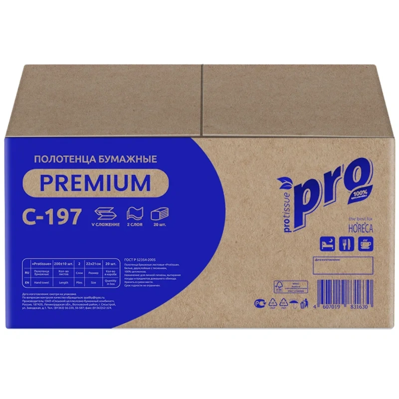 Бумажные полотенца Protissue C197, листовые, белые, V укладка, 200шт, 2 слоя