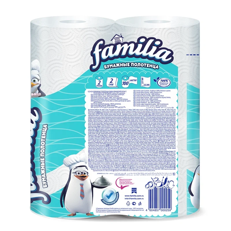 Полотенца Familia Plus – отличная замена обычным тканевым полотенцам. Двухслойные бумажные полотенца из 100% натуральной целлюлозы очень впитывающие и прочные. Используйте для уборки, готовки и сервировки. Перфорация на пол-листа поможет более экономично расходовать бумажные полотенца. Идеальный помощник для хозяйки!